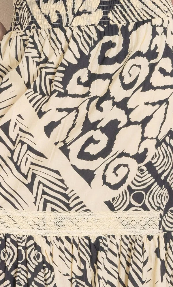 Printed Smocked Waist Cotton Midi Skirt