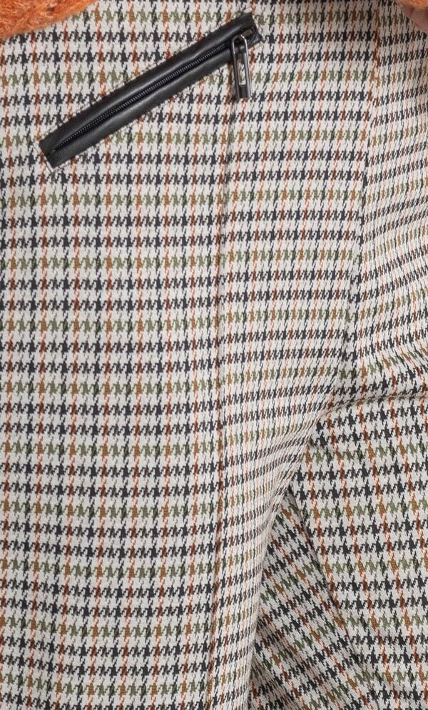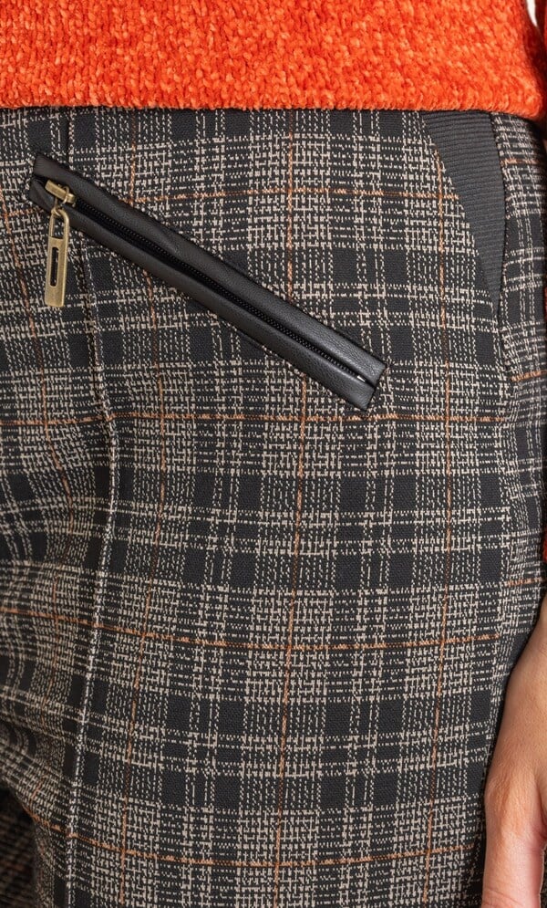 Slim leg pull on trousers that are crafted in a speckled soft fabric for comfort and are perfect for everyday wear. The waist is finished with elasticated side panels, we have also added faux leather trimmed front mock pockets and a central pintuck to the front legs for a neat finish. Inside leg 74cms.